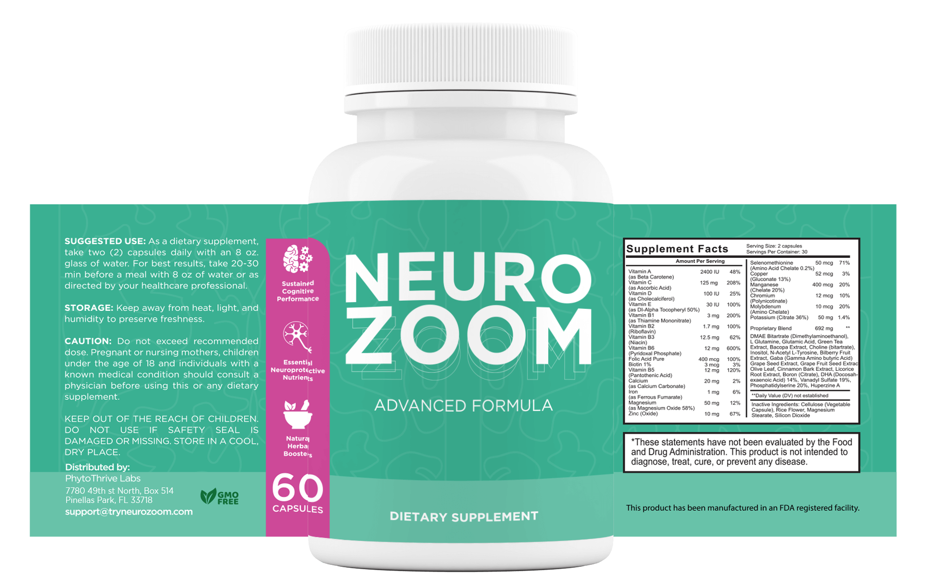 To view the full list of ingredients and the nutritional values of the NeuroZoom, please check the product label below.